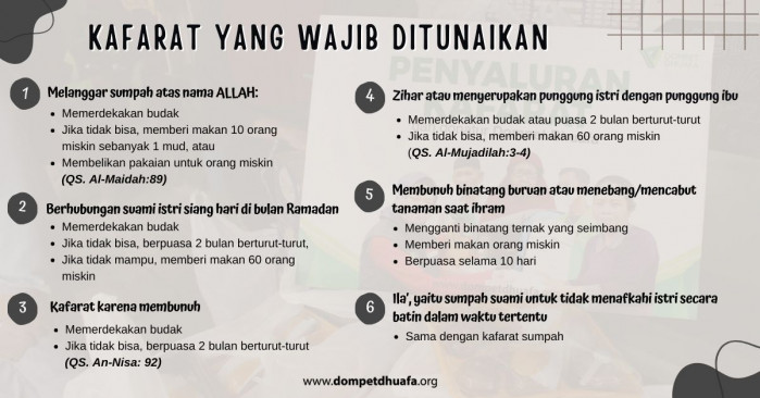 APA ITU KAFARAT? Kafarat berasal dari kata kufr yang artinya "tertutup". Dalam arti lain, kafarat berlaku seperti denda. Tindakan ini merupakan tanda taubat seorang hamba kepada Rabbnya agar bisa menebus dosa yang telah diperbuat.